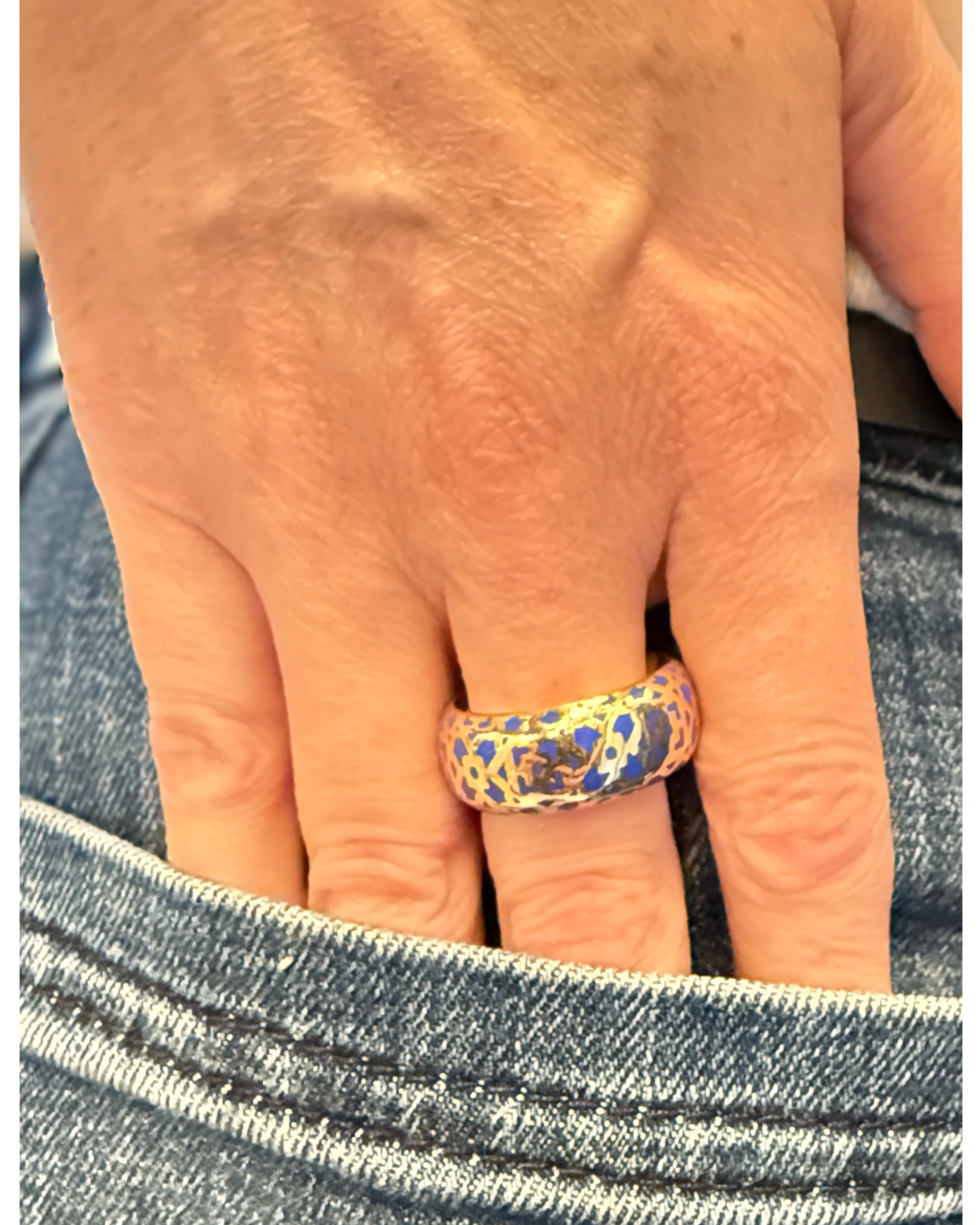 Our MARRAKESH Gold Enamel Tiffany Ring is a vibrant vintage statement from the iconic Paloma Picasso for Tiffany & Co. collection. Crafted in 18kt yellow gold, this bold design features rich blue enamel detailing, inspired by the colors and energy of Marrakesh.