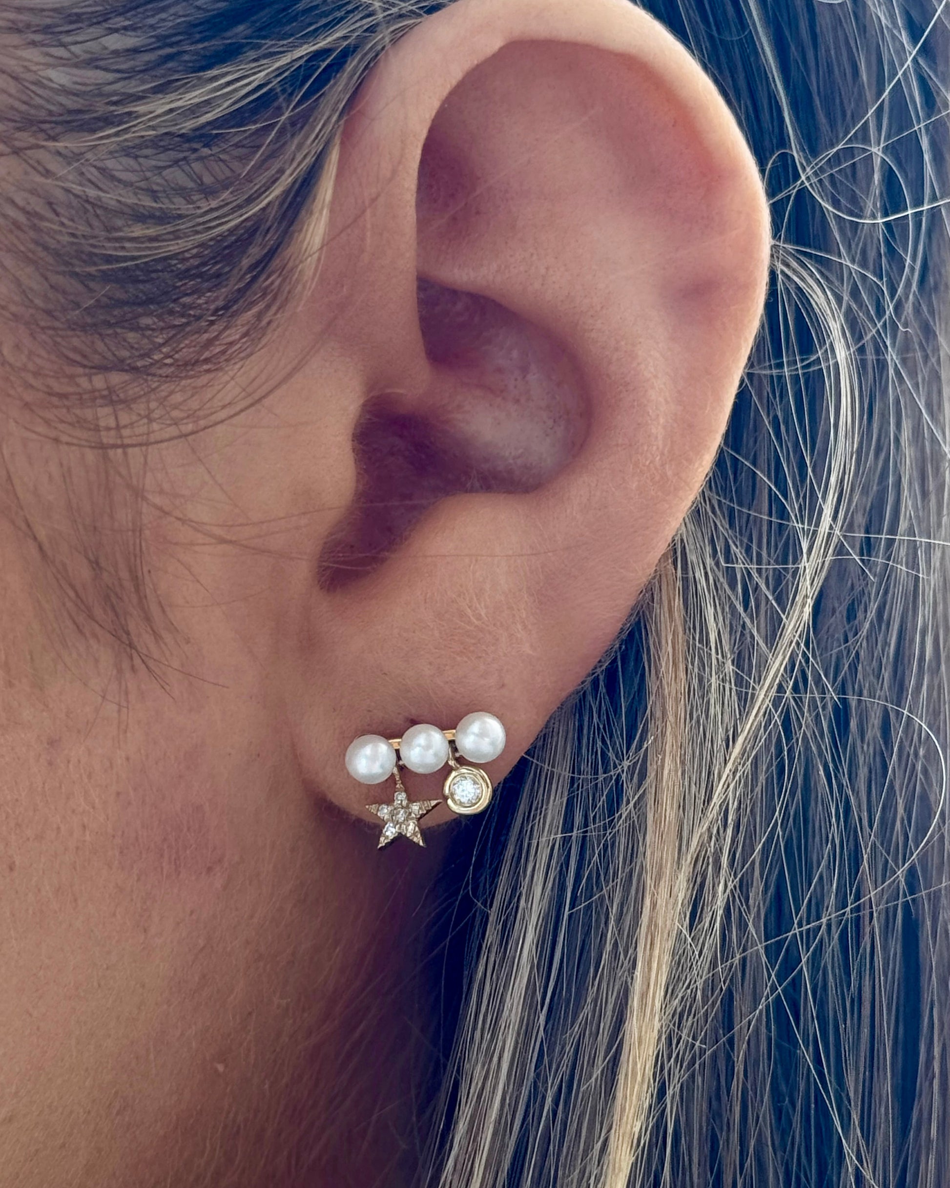 Our Nash Earrings are where classic meets cool. Crafted in 14kt yellow gold, this pair features luminous pearls paired with delicate diamonds and dainty diamond drop charms that add movement and sparkle. At just ¼" long, Nash delivers a refined statement that’s subtle, sculptural, and undeniably chic.